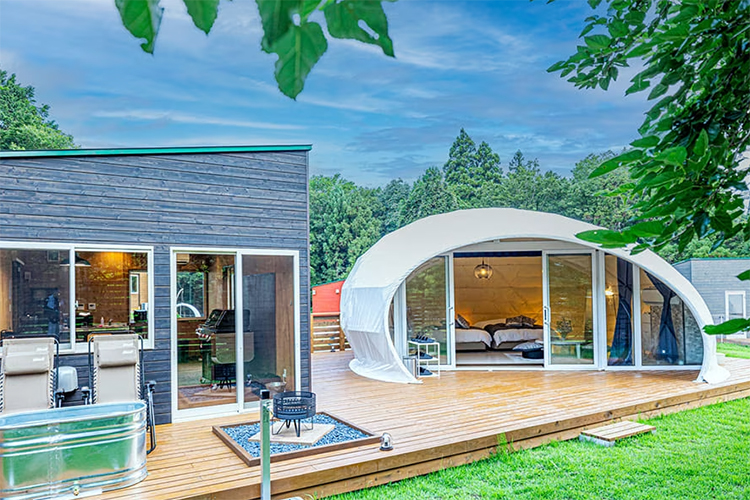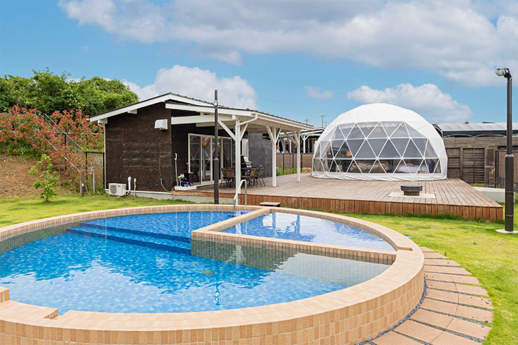 温泉・プール・サウナなど“滞在コンテンツ”が揃った、総合力が高いグランピング。