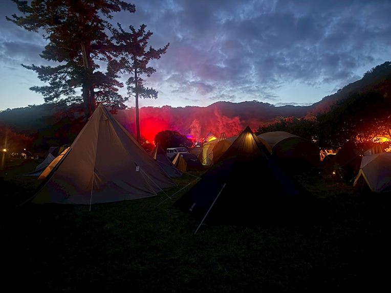 場内キャンプサイトは東伊豆クロスカントリーコース内に位置しており、ステージからのアクセスが良いのが魅力。テントに戻ってちょっと休憩してからまたフロアに戻る、というスタイルで楽しんでいる方が多かったです。