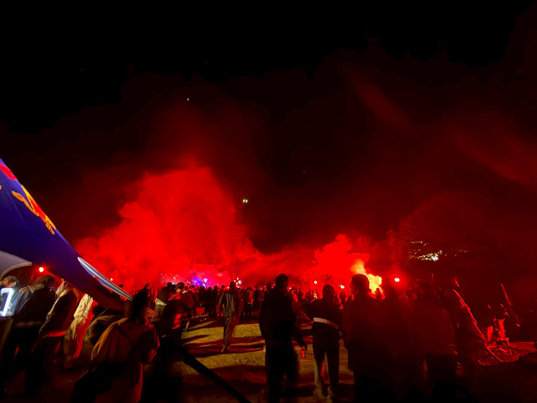 日が完全に落ちてからが本番。金曜日と土曜日は深夜1時まで音楽が鳴り続けます。RDC StageではHAAiが夜空の下で圧巻のパフォーマンス。RED BULL StageではHelena Hauffのハードでミニマルなセットが響き渡りました。
