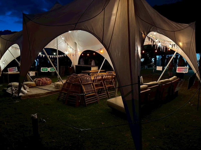 キャンプとの相性が最高:テントに戻って休憩→またフロアに出る自由な過ごし方
